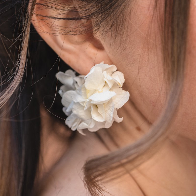 Earrings with preserved flowers, small 3 cm hoops with white preserved hydrangea, the subtle detail you were looking for to complete your look. Small but very striking!