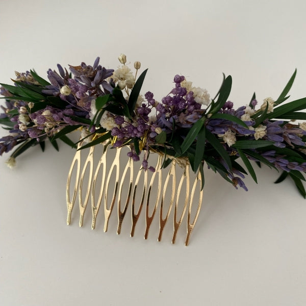 Grand peigne inspiré des plus romantiques et sauvages, réalisé avec des fleurs et feuilles stabilisées ne vous laissera pas indifférent.
