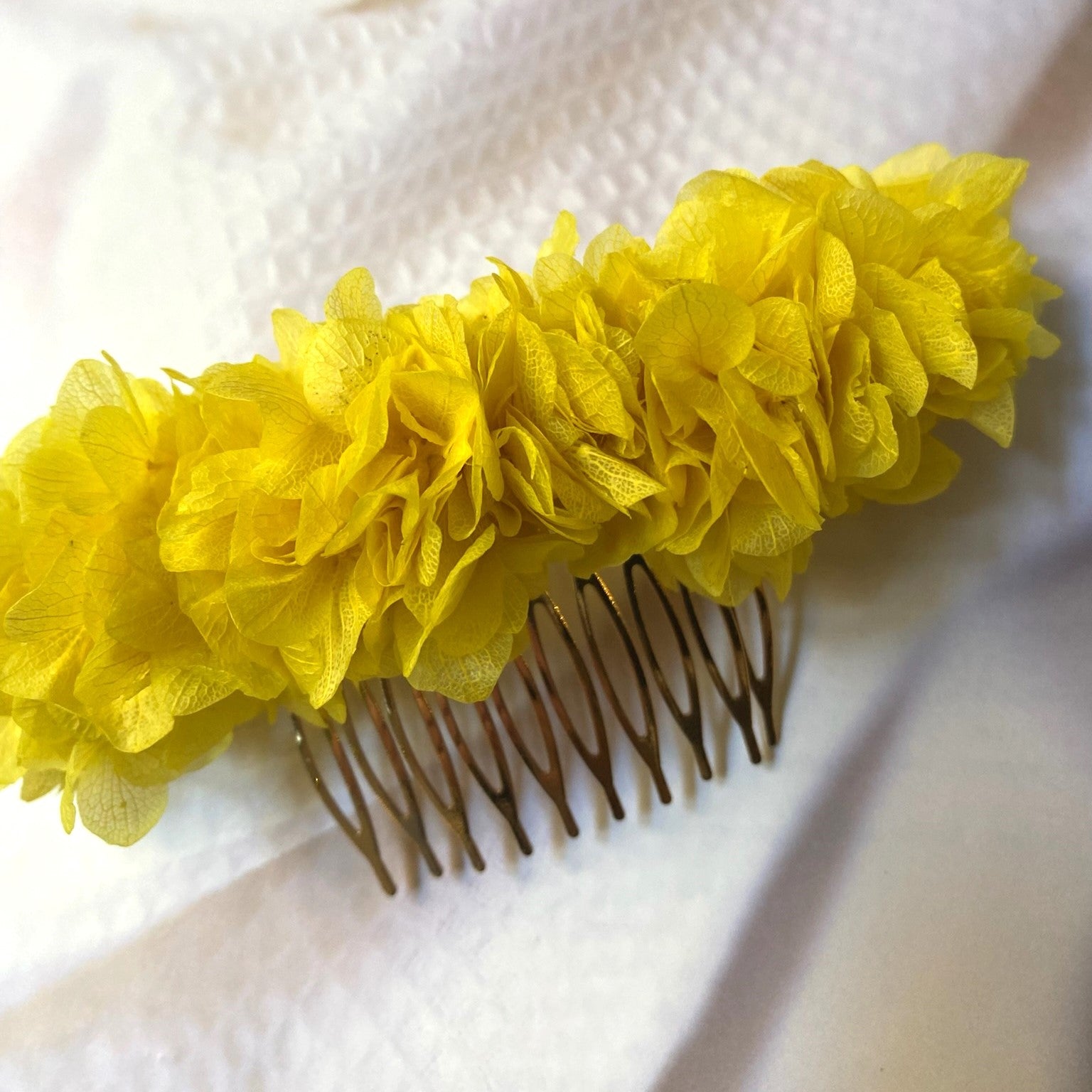 Découvrez notre peigne réalisé avec des fleurs d'hortensia stabilisées. Idéal pour décorer vos cheveux avec un détail unique et super original.