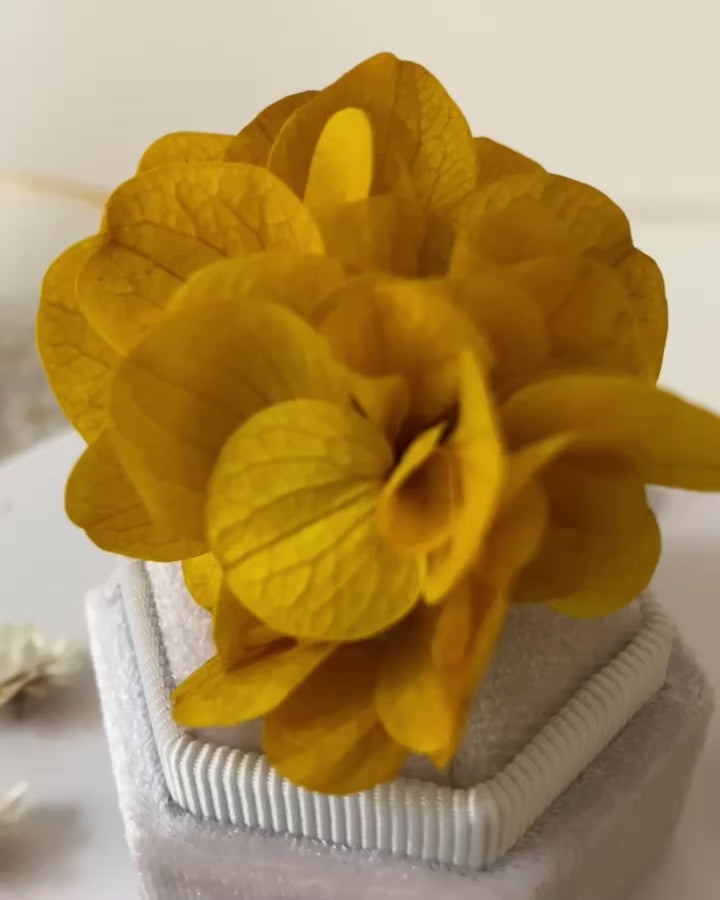 Creado con auténticos pétalos de hortensia preservada, es el elemento perfecto para quienes buscan destacar de manera original. Su diseño único y vibrante captura todas las miradas, convirtiéndose en el centro de atención de allá donde vayas . Ideal para fiestas y eventos especiales, este anillo añade frescura natural para completar tu estilo de manera inolvidable.