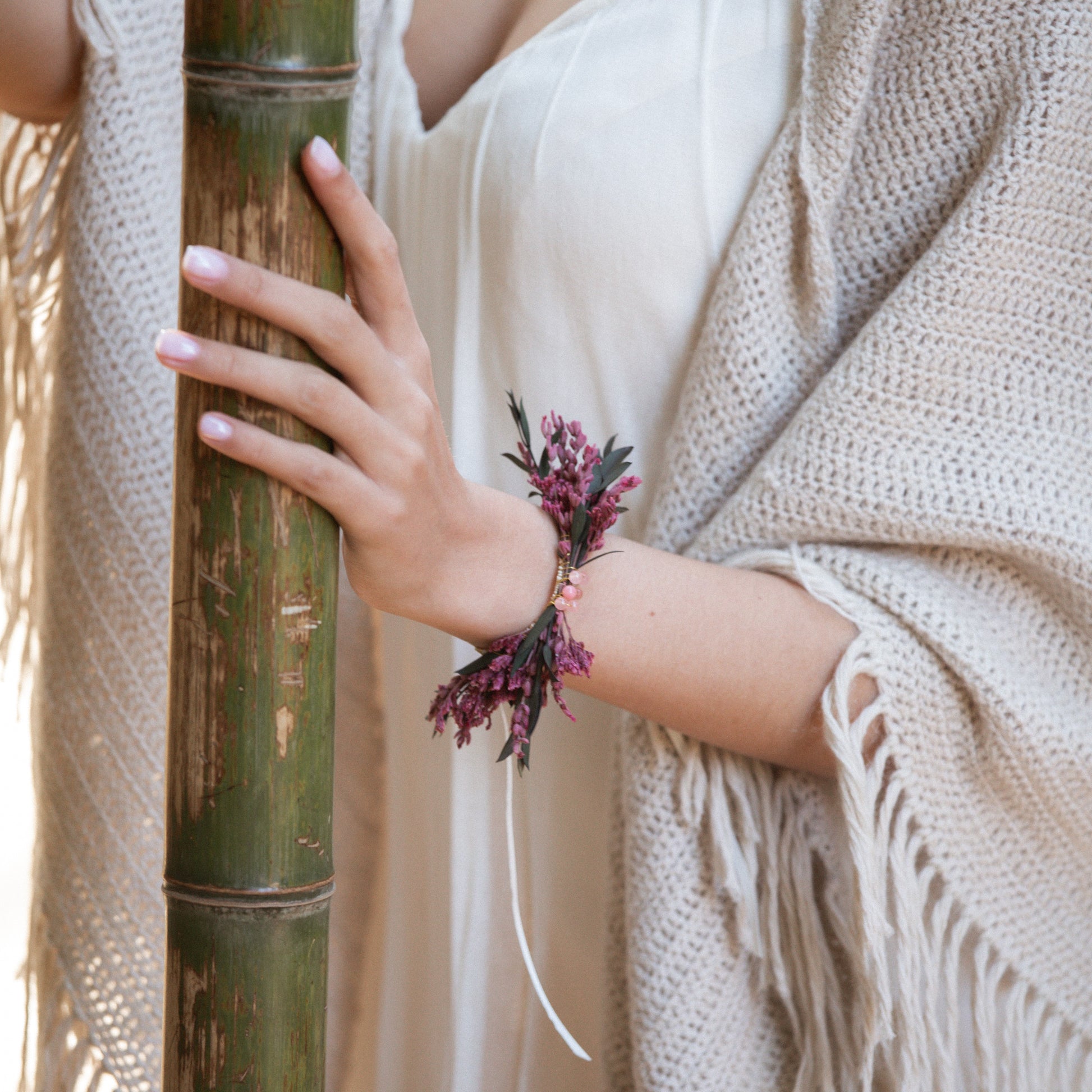Esta es tu pulsera ideal, hecha con lavanda, eucalipto alargado y limonium preservados, el detalle que buscabas está aquí.